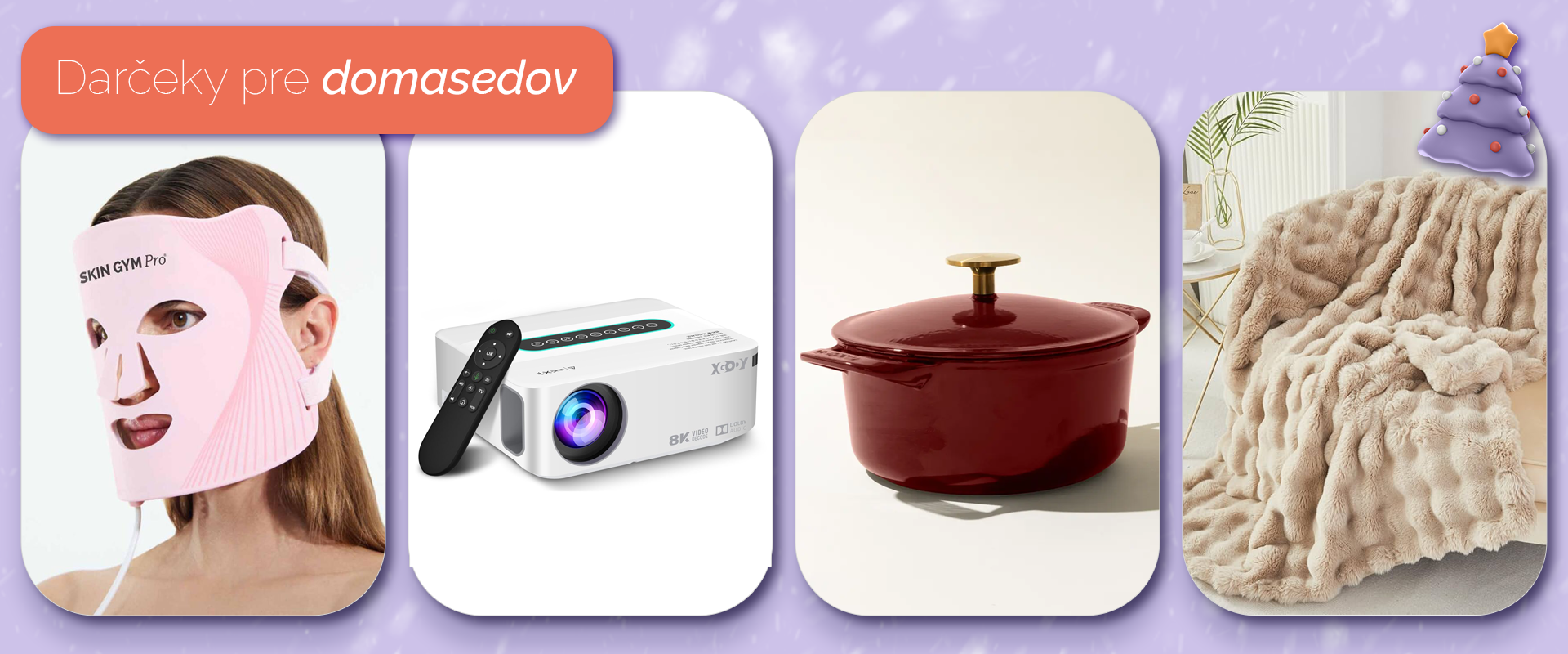 Kategória domov je o veciach, vďaka ktorým je bývanie útulnejšie, praktickejšie a viac „cozy“. Nájdeš tu deky, sviečky, organizéry či dekorácie – ideálne darčeky pre homebody ľudí, ktorí milujú chill večery doma.