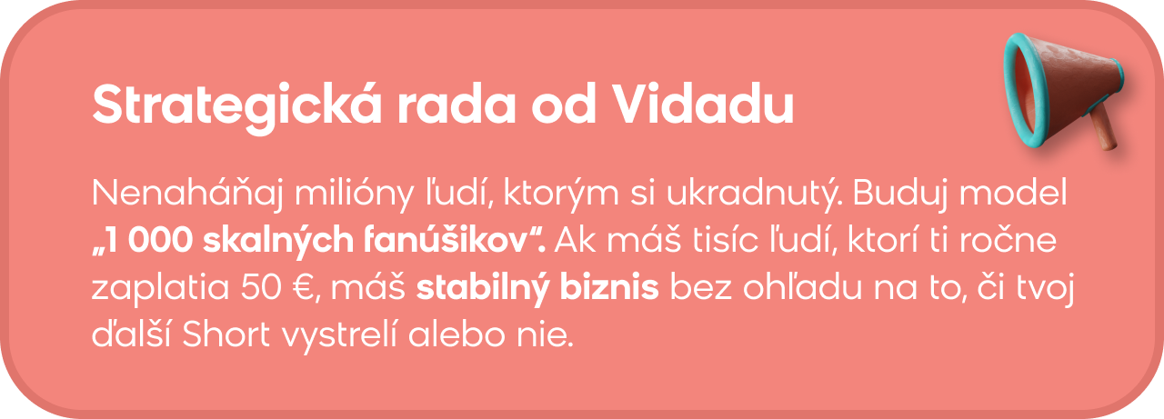 Svet tvorby obsahu dospel. Éra, kedy stačil jeden virál na stabilný príjem z AdSense, je preč a dnes platí jasné pravidlo, že milión videní poteší, ale dlhodobú kariéru ti vybuduje až tisícka verných fanúšikov. Cieľom už nie je osloviť úplne každého, ale stať sa pre svoju komunitu dôveryhodným a nenahraditeľným brandom.